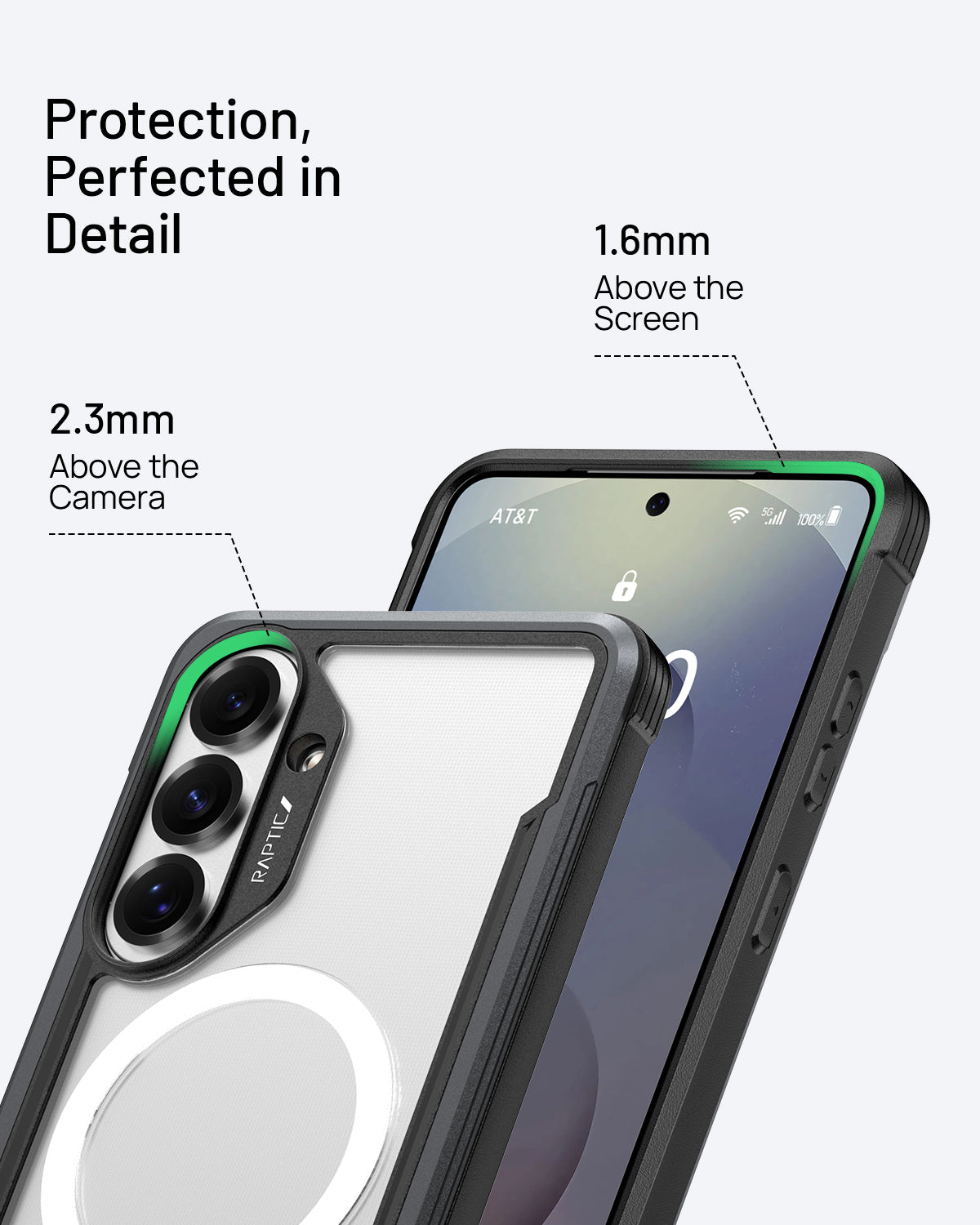 Using a combination of hard polycarbonate, soft rubber and anodized aluminum, our Raptic Shield case is the best protection you could ever want for your Galaxy S26. We use machined metal to give your case a solid foundation that offers military-grade drop protection from 23 feet on concrete, while still maintaining a sleek style to match your refined-but-edgy taste. That’s why we back it with clear polycarbonate—so you can show off your Galaxy S26 while keeping it safe and secure.