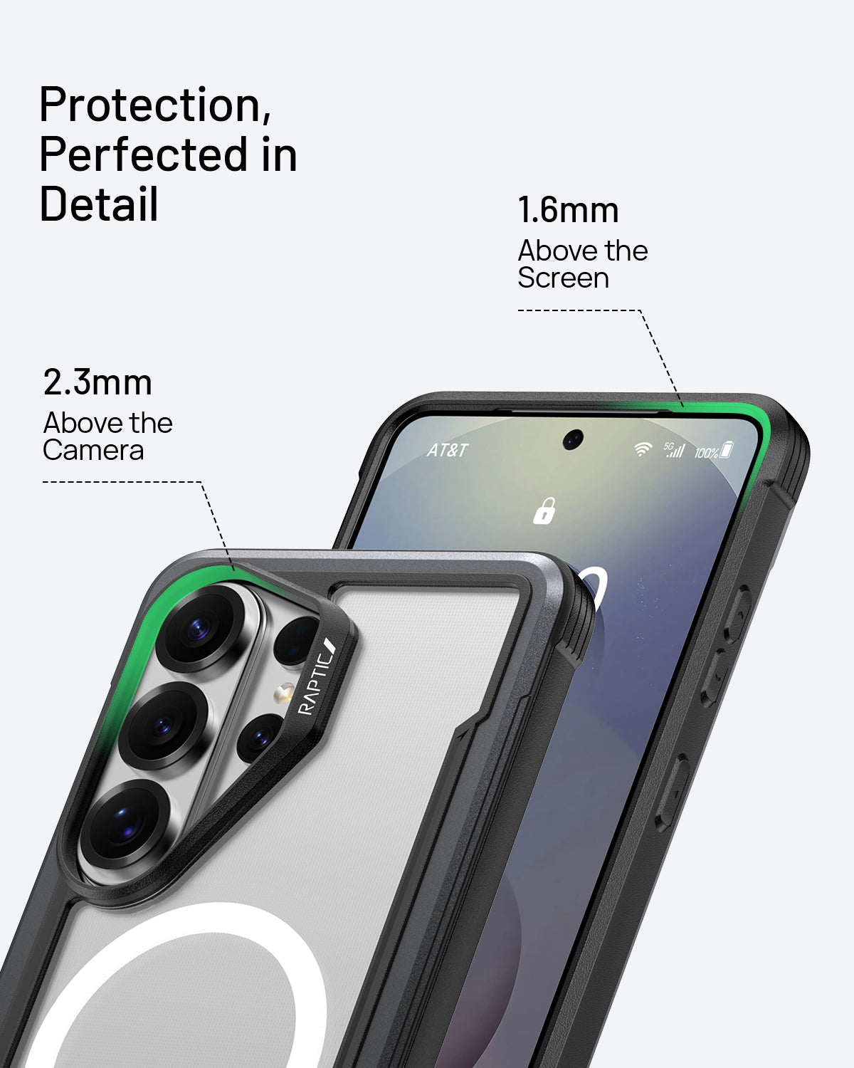 Using a combination of hard polycarbonate, soft rubber and anodized aluminum, our Raptic Shield case is the best protection you could ever want for your Galaxy S26 Ultra. We use machined metal to give your case a solid foundation that offers military-grade drop protection from 23 feet on concrete, while still maintaining a sleek style to match your refined-but-edgy taste. That’s why we back it with clear polycarbonate—so you can show off your Galaxy S26 Ultra while keeping it safe and secure.