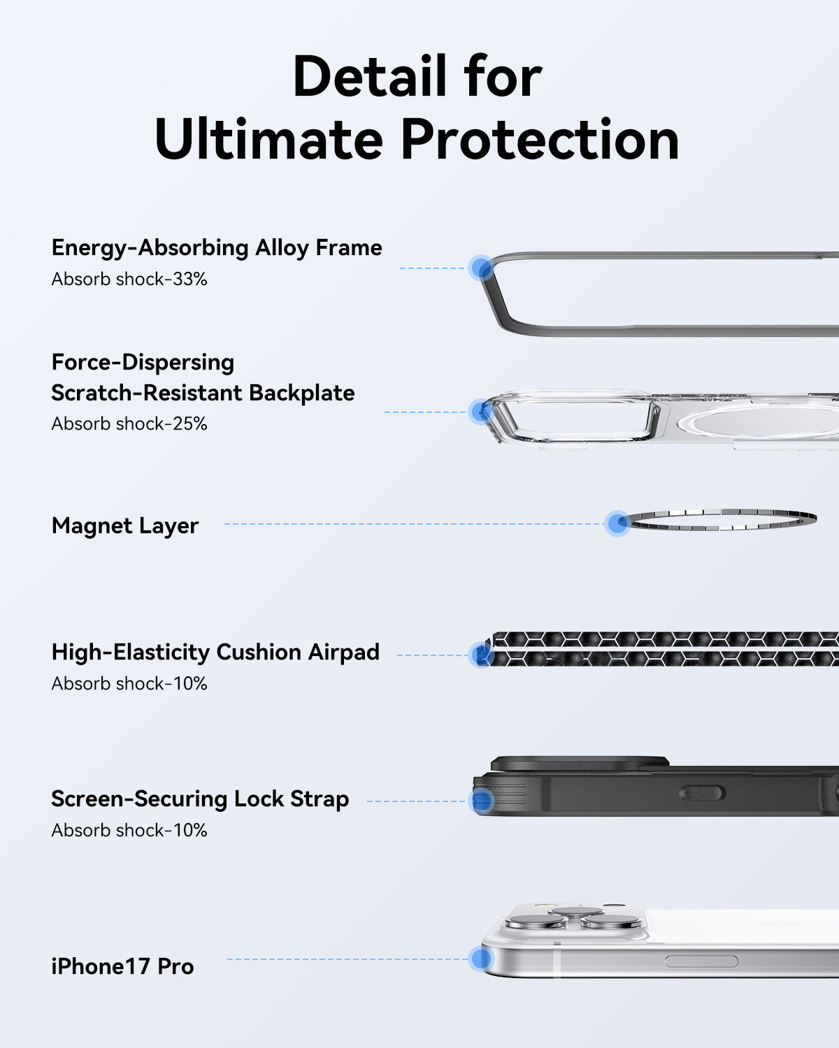Compatible with iPhone 17 Pro Works seamlessly with MagSafe chargers and accessories Supports Qi/Qi2 wireless charging Camera bezel safeguards your lenses from accidental drops