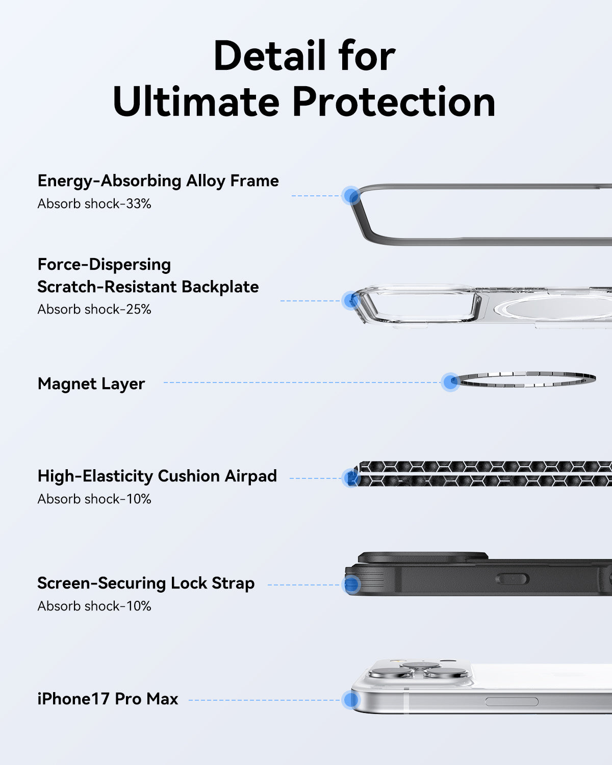 Compatible with iPhone 17 Pro Max Works seamlessly with MagSafe chargers and accessories Supports Qi/Qi2 wireless charging Camera bezel safeguards your lenses from accidental drops