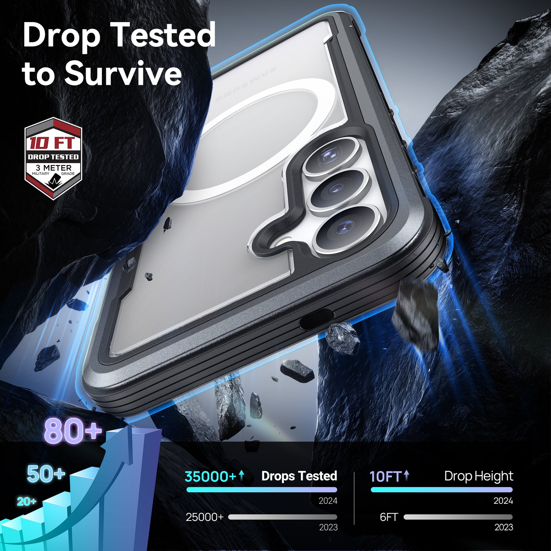 Using a combination of hard polycarbonate, soft rubber and anodized aluminum, our Raptic Shield case is the best protection you could ever want for your Galaxy S25+. We use machined metal to give your case a solid foundation that offers military-grade drop protection from 10 feet on concrete, while still maintaining a sleek style to match your refined-but-edgy taste. That’s why we back it with clear polycarbonate—so you can show off your Galaxy S25+ while keeping it safe and secure.