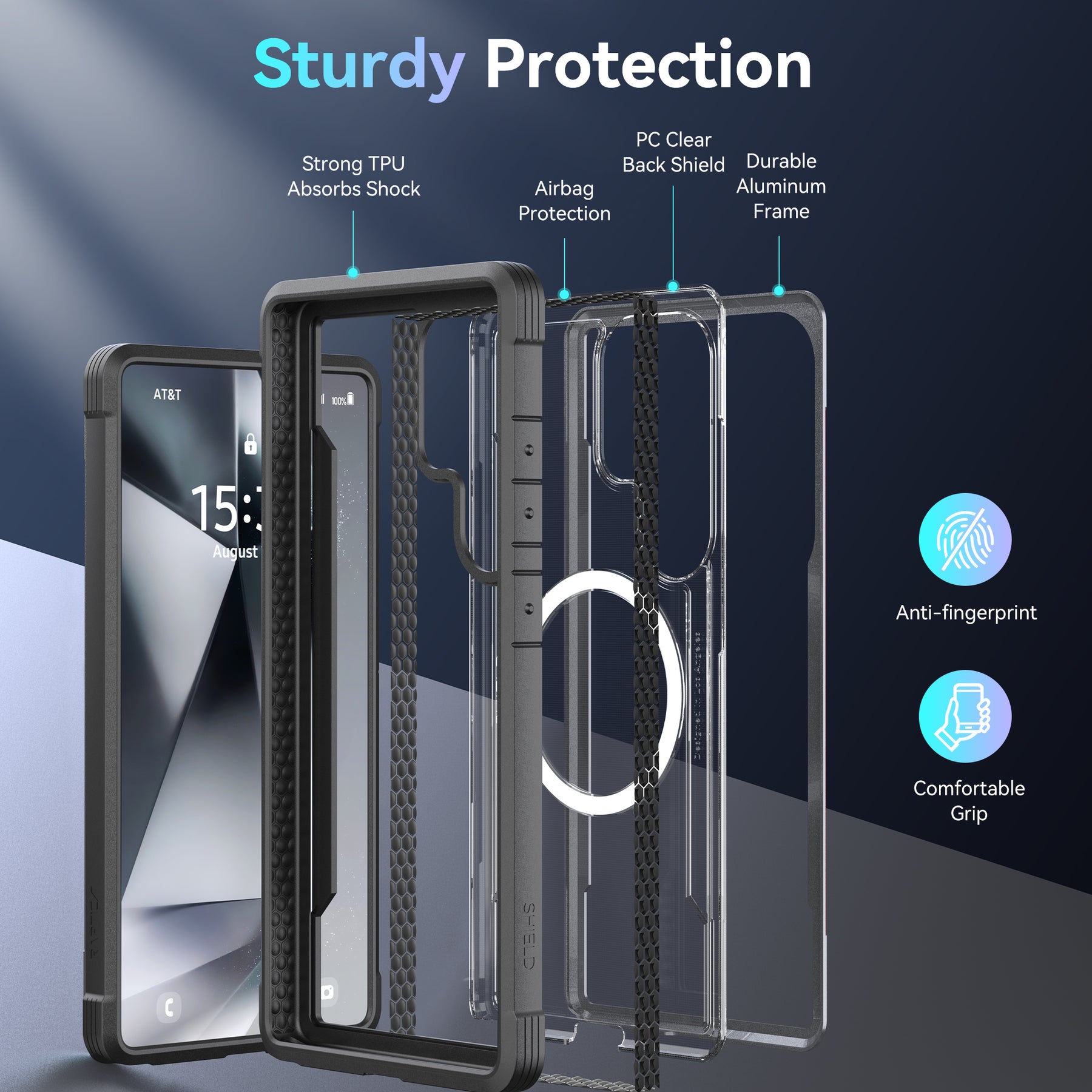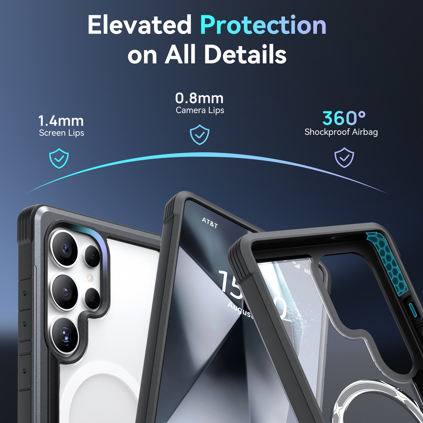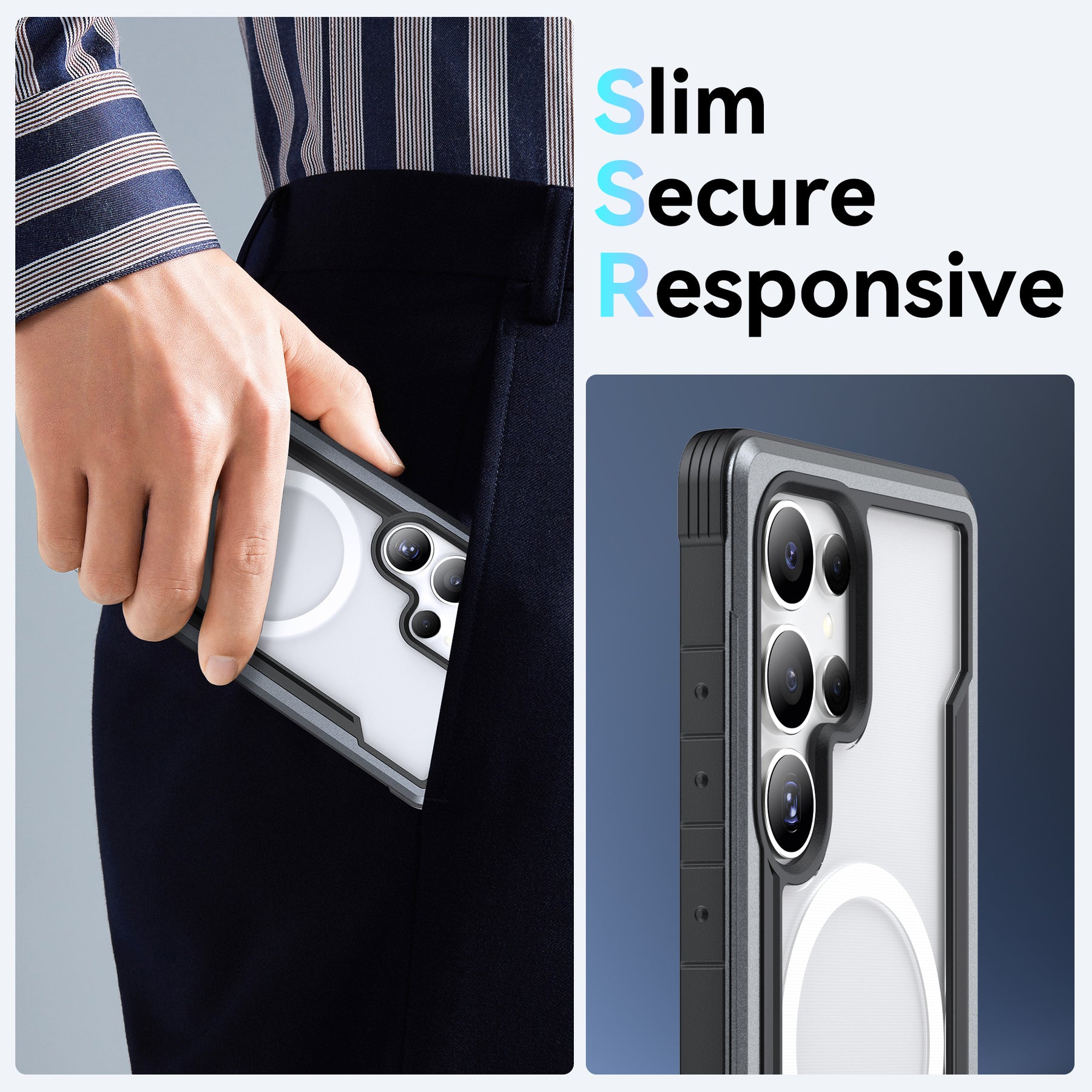 Using a combination of hard polycarbonate, soft rubber and anodized aluminum, our Raptic Shield case is the best protection you could ever want for your Galaxy S25 Ultra. We use machined metal to give your case a solid foundation that offers military-grade drop protection from 10 feet on concrete, while still maintaining a sleek style to match your refined-but-edgy taste. That’s why we back it with clear polycarbonate—so you can show off your Galaxy S25 Ultra while keeping it safe and secure.