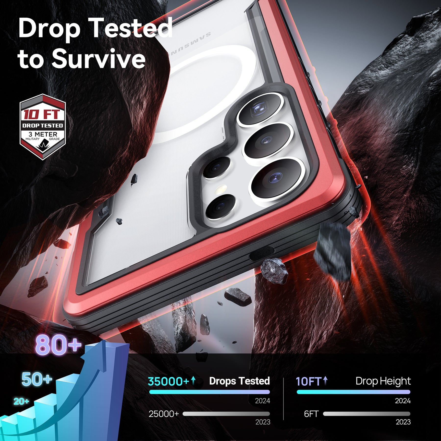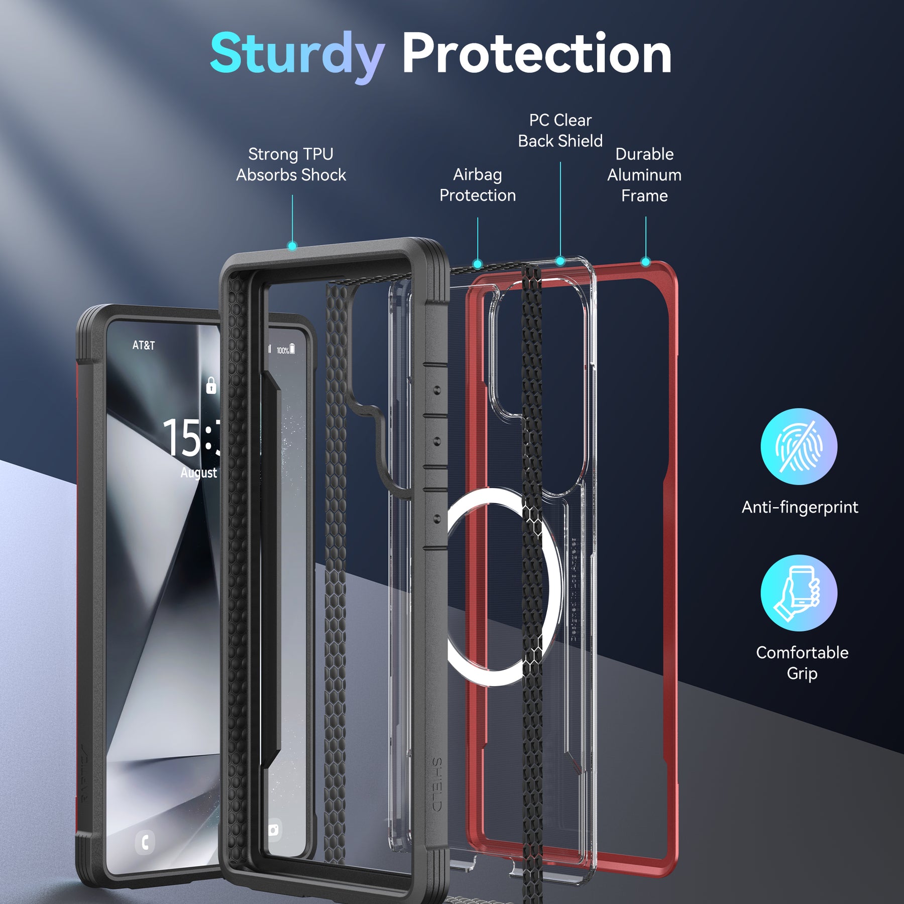 Using a combination of hard polycarbonate, soft rubber and anodized aluminum, our Raptic Shield case is the best protection you could ever want for your Galaxy S25 Ultra. We use machined metal to give your case a solid foundation that offers military-grade drop protection from 10 feet on concrete, while still maintaining a sleek style to match your refined-but-edgy taste. That’s why we back it with clear polycarbonate—so you can show off your Galaxy S25 Ultra while keeping it safe and secure.
