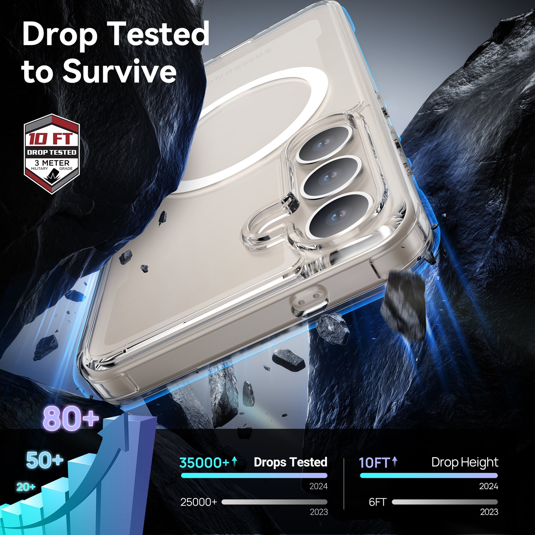 Discover the ultimate protection for your Samsung Galaxy S25 with our highly durable and lightweight cover. Engineered to withstand drops from up to 10 feet, this clear MagSafe-compatible case features advanced magnets for superior performance with MagSafe chargers and accessories, including wallets and car mounts.