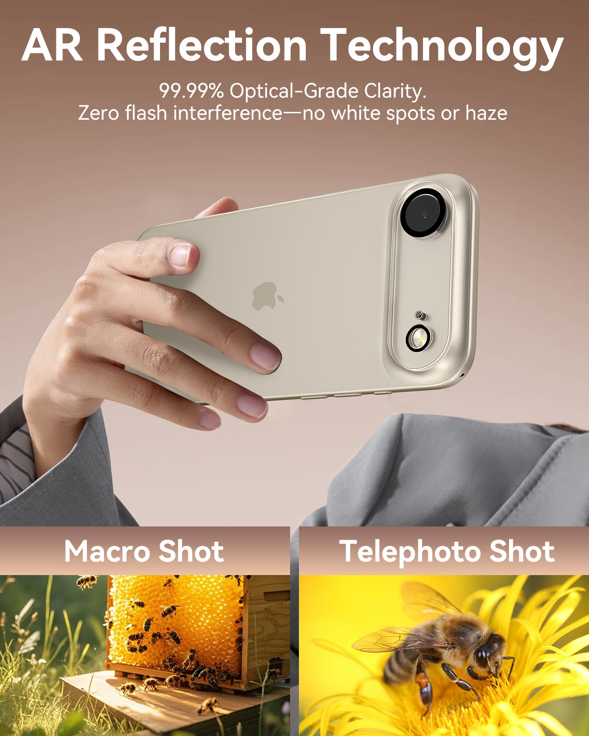 Crafted with premium materials, our lens protectors are ultra-thin and transparent, so they won't interfere with your camera's performance or clarity. Plus, with their precise fit, they seamlessly blend in with your iPhone's sleek design, preserving its aesthetics while keeping it safe from harm.