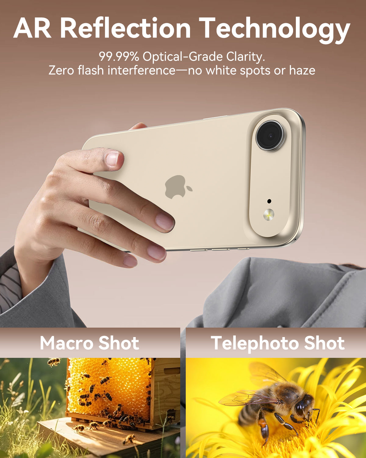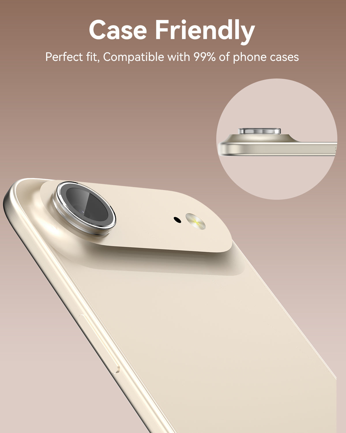 Crafted with premium materials, our lens protectors are ultra-thin and transparent, so they won't interfere with your camera's performance or clarity. Plus, with their precise fit, they seamlessly blend in with your iPhone's sleek design, preserving its aesthetics while keeping it safe from harm.
