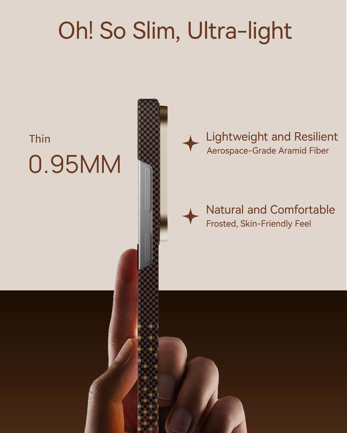 Woven from ultra-strong aramid fiber, the same material used in jets and military gear, this Phone case delivers unbeatable scratch resistance, ultra-lightweight comfort, and discoloration. Unlike carbon fiber, it’s non-conductive and won’t interfere with the signal.